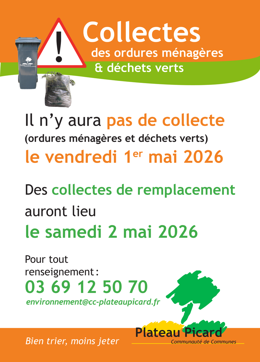 Il n’y aura pas de collecte le vendredi 1er mai 2026.