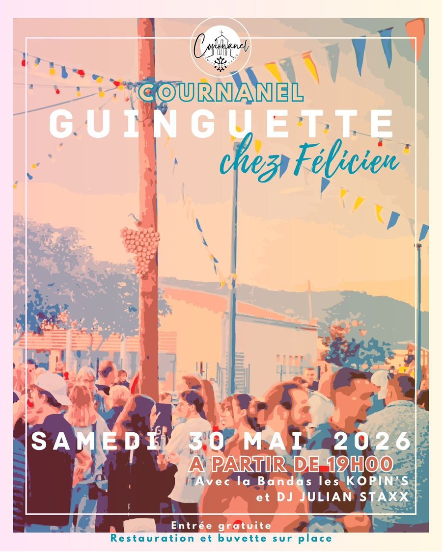 19h00 chez Félicien à Cournanel, pour lancer la saison, avec la Banda des Kopin's 🎺💃 puis Julian Staxx pour vous faire profiter d'un bon moment musical 🎧
