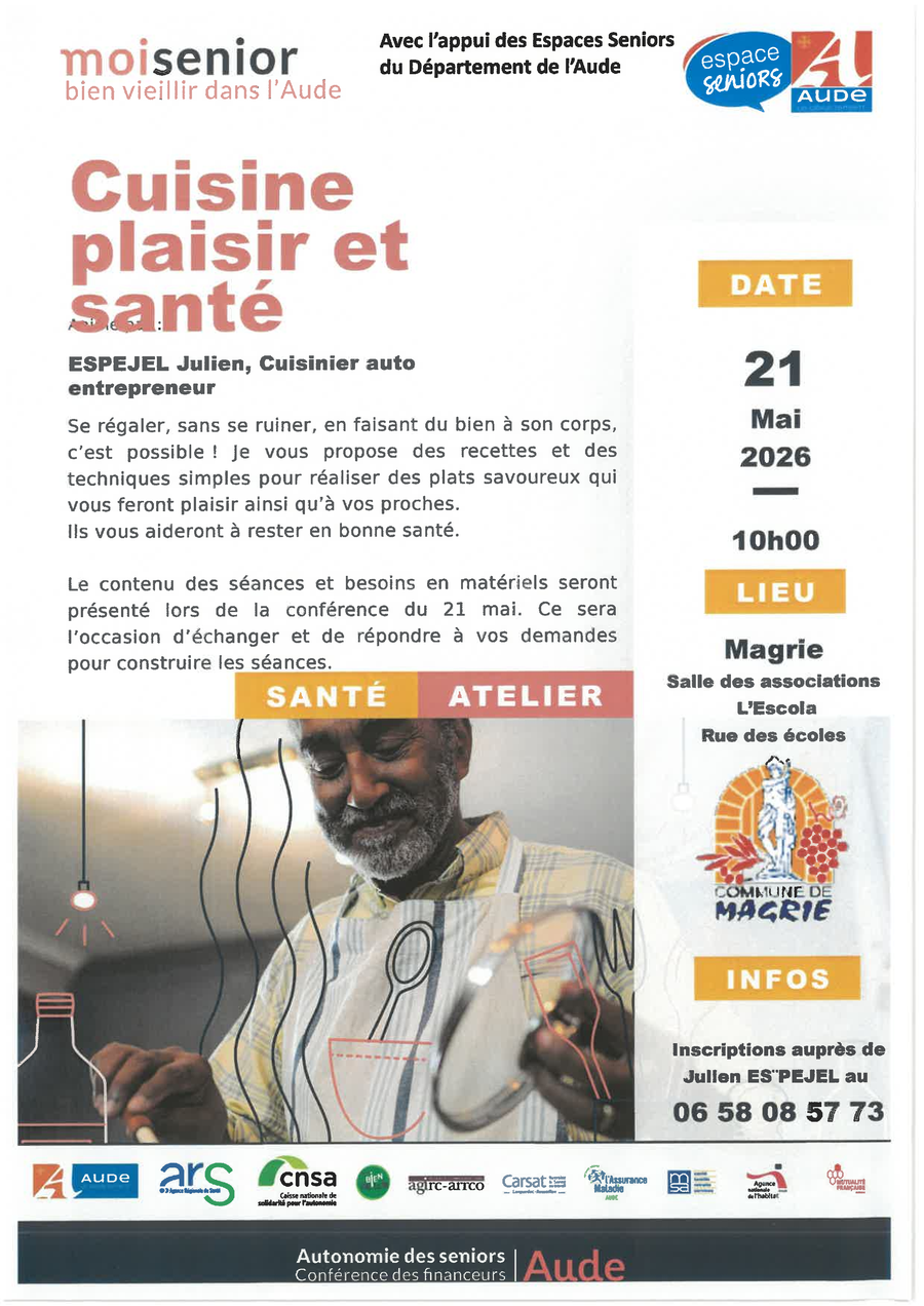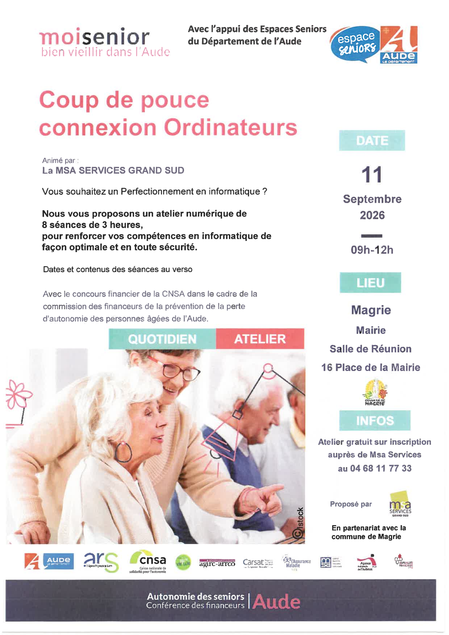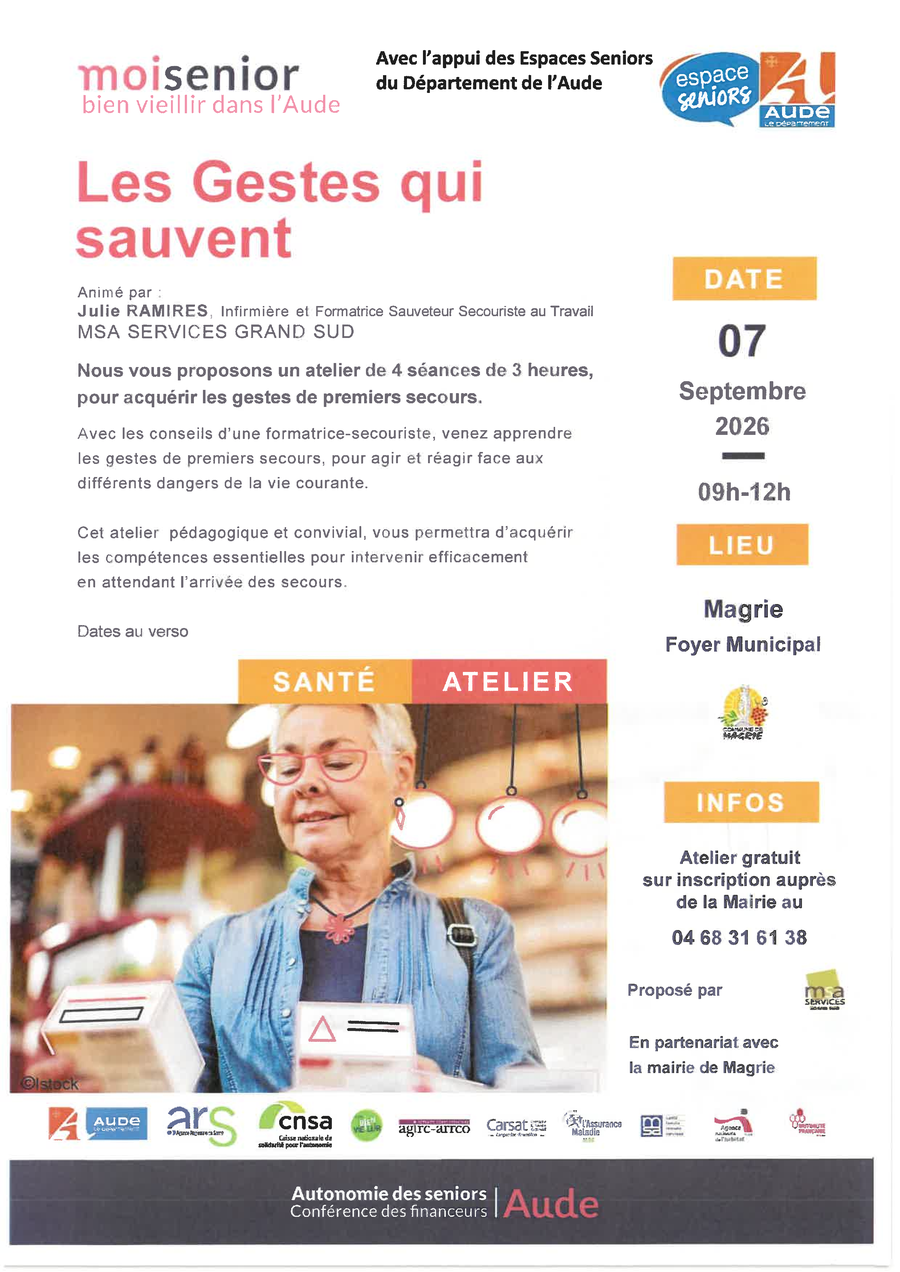 LA MSA SERVICE GRAND SUD PROPOSE TROIS ATELIERS SUR LA COMMUNE DE MAGRIE POUR LES SÉNIORS.