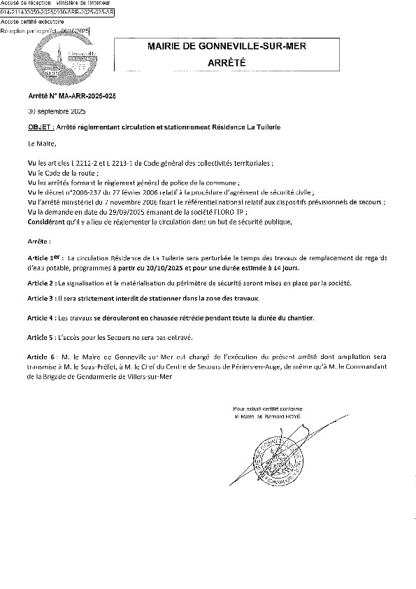 Arrêté règlementant la circulation Chemin du Four à partir du 13 octobre .