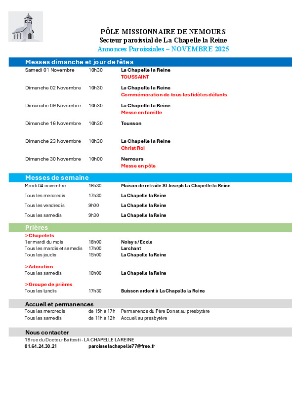 Mairie : lundi, mardi, jeudi 13h30 – 17h et samedi 9h - 12h