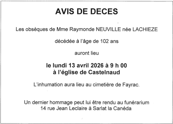 de Madame Raymonde NEUVILLE