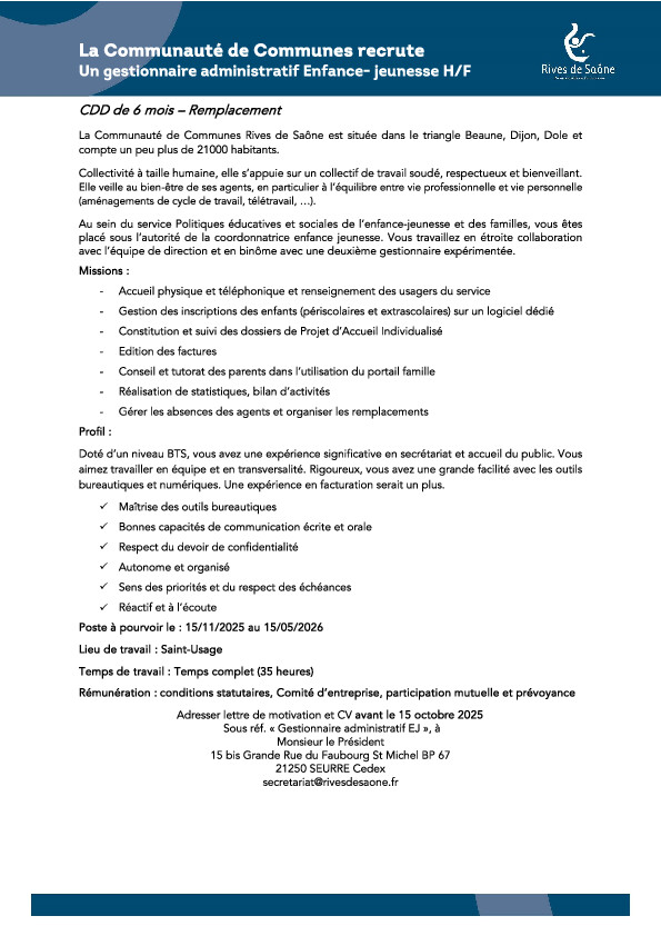 🕘 De 9h à 16h à la Communauté de Communes Rives de Saône à Échenon (rue du Cosec).