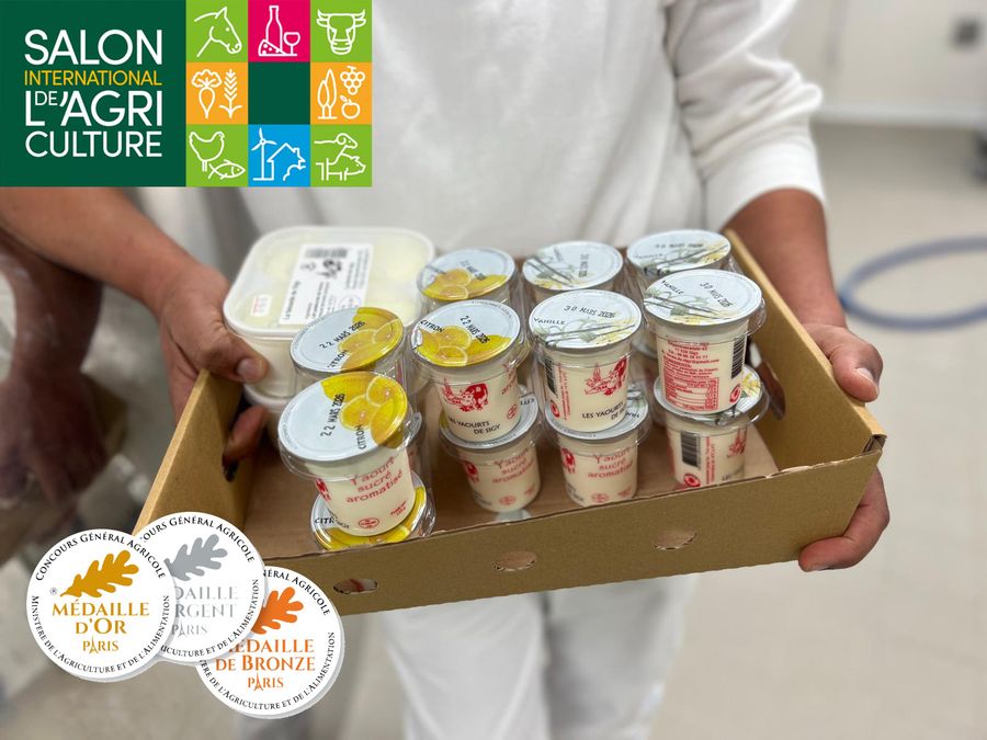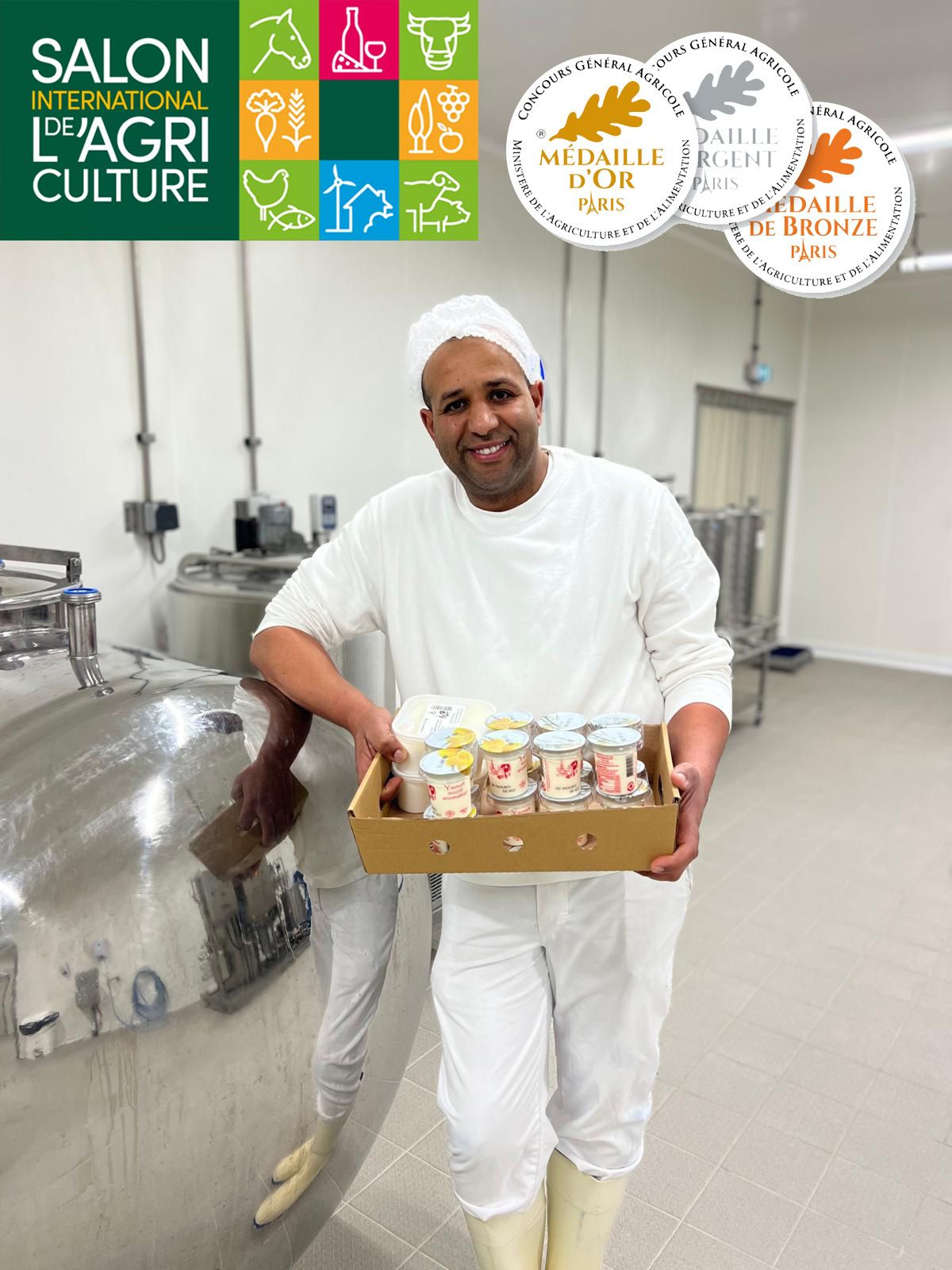 [ Salon de l'agriculture 2026 ] Ottman Beyrouk, laitier de la Ferme de Sigy et de la laiterie du Pays de Montereau à Saint Germain Laval, a une nouvelle fois été récompensé cette année au salon de l'agriculture 2026. Médaille d'or pour son yaourt aromatisé au citron, Médaille d'argent pour son fromage frais faisselle au lait de vache et Médaille de bronze pour son yaourt aromatisé à la vanille. Félicitations à lui et son équipe ! Vous pouvez retrouvez tous ses produits dans nos deux box terroirs accès libre 24h/24 7j/7 - règlement en CB.