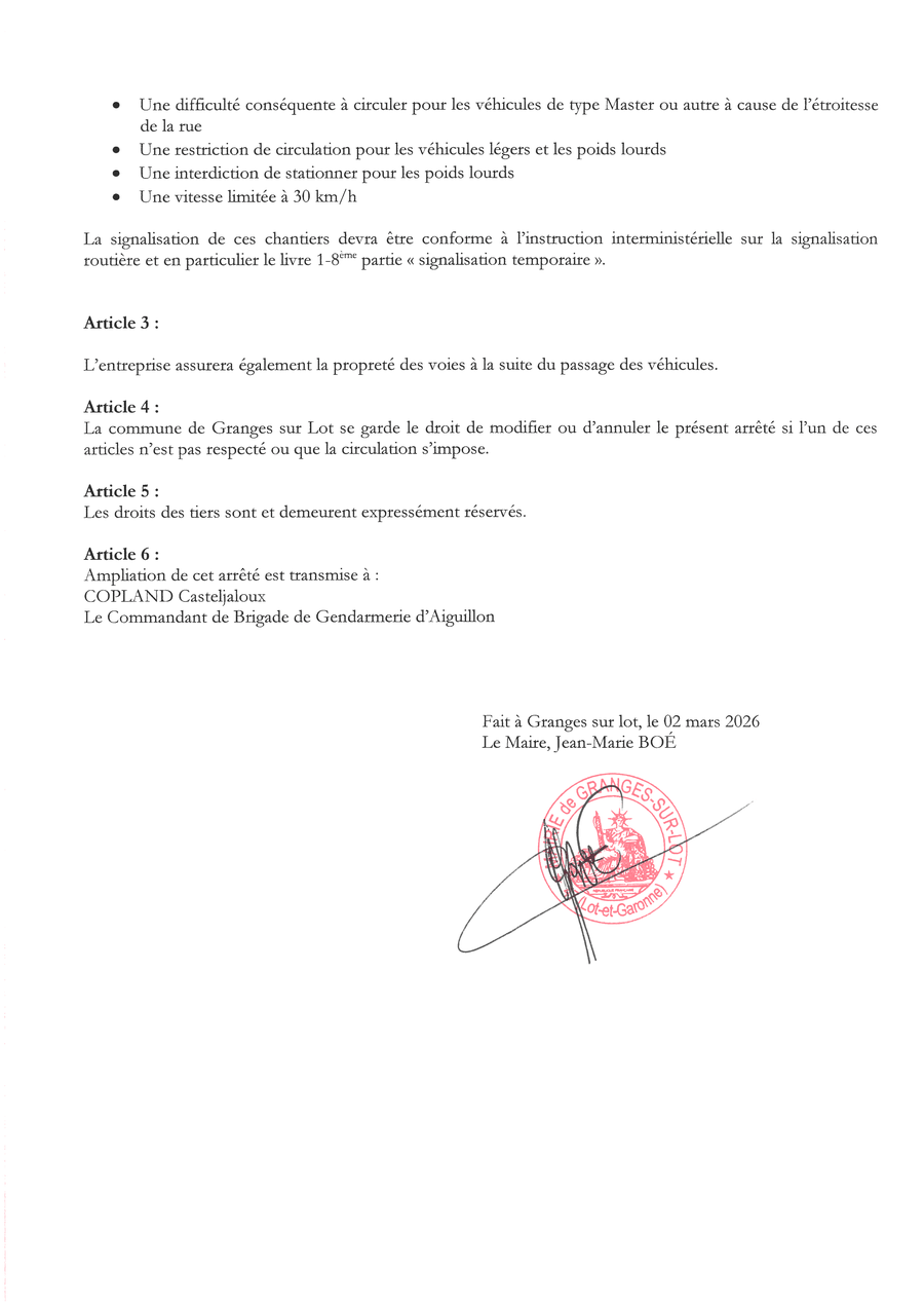 Ci-dessous l'arrêté émis.