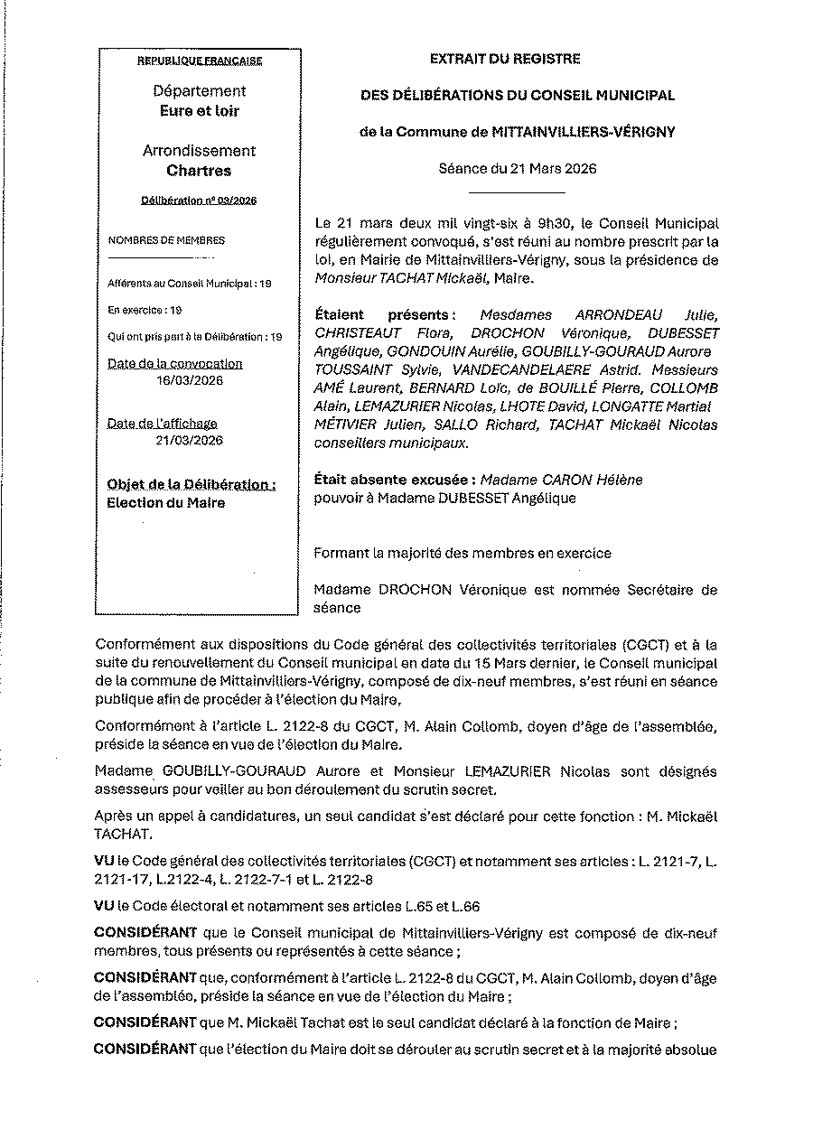 1 PLACE DE LA MAIRIE 28190 Mittainvilliers-Verigny