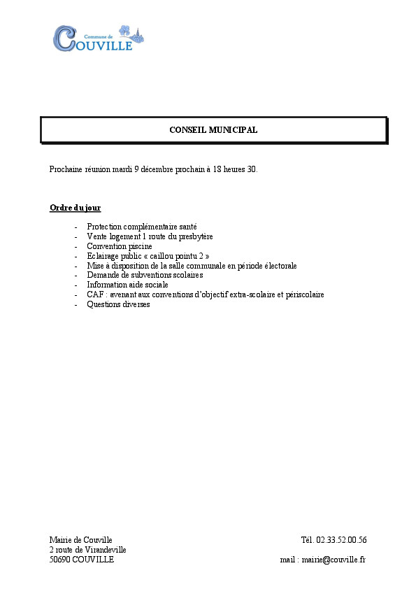 Renseignement et inscription obligatoire au 02 33 01 00 00