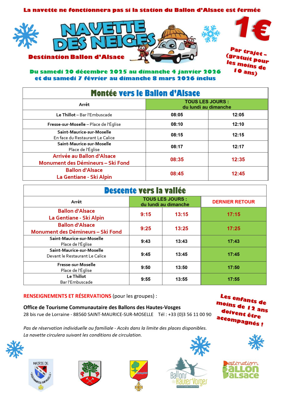 👍 Navette des Neiges financée par la Mairie de Saint-Maurice-sur-Moselle, Le Thillot et la Commune Fresse sur Moselle en partenariat avec l'Office de Tourisme Destination Ballons des Hautes Vosges !