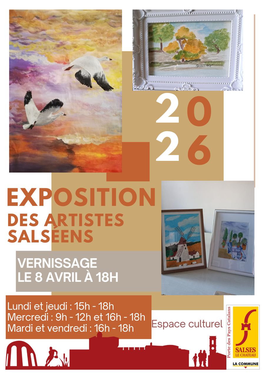 🎨 Venez découvrir les œuvres de nos talentueux artistes locaux ! Une variété de peintures et créations vous attend à l’Espace Culturel de Salses-le-Château.