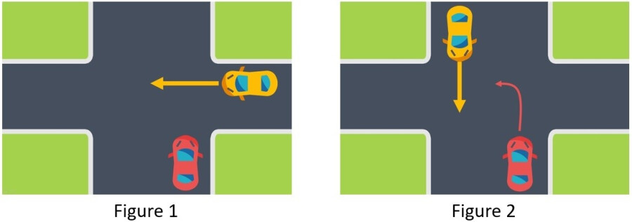 De même, lorsqu'un conducteur souhaite tourner à gauche, celui-ci doit céder le passage aux véhicules venant de sa droite et souhaitant continuer tout droit, ou tourner à gauche (figure 2