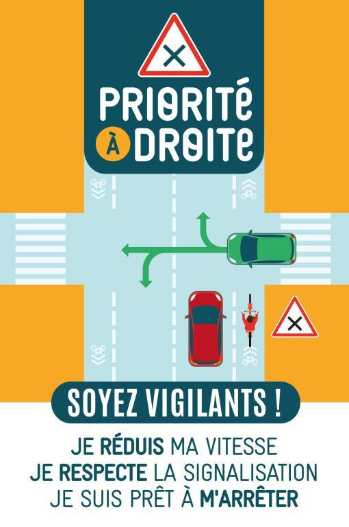 La priorité à droite n'est pas un Stop mais un Cédez le passage. Cela signifie que si aucun véhicule n'est présent à droite, l'arrêt n'est pas obligatoire. Les conducteurs doivent céder le passage. Attention, à l'approche de l'intersection, ralentir sa vitesse peut ne pas être suffisant. Le conducteur doit être en mesure de s'arrêter en présence d'un autre véhicule.