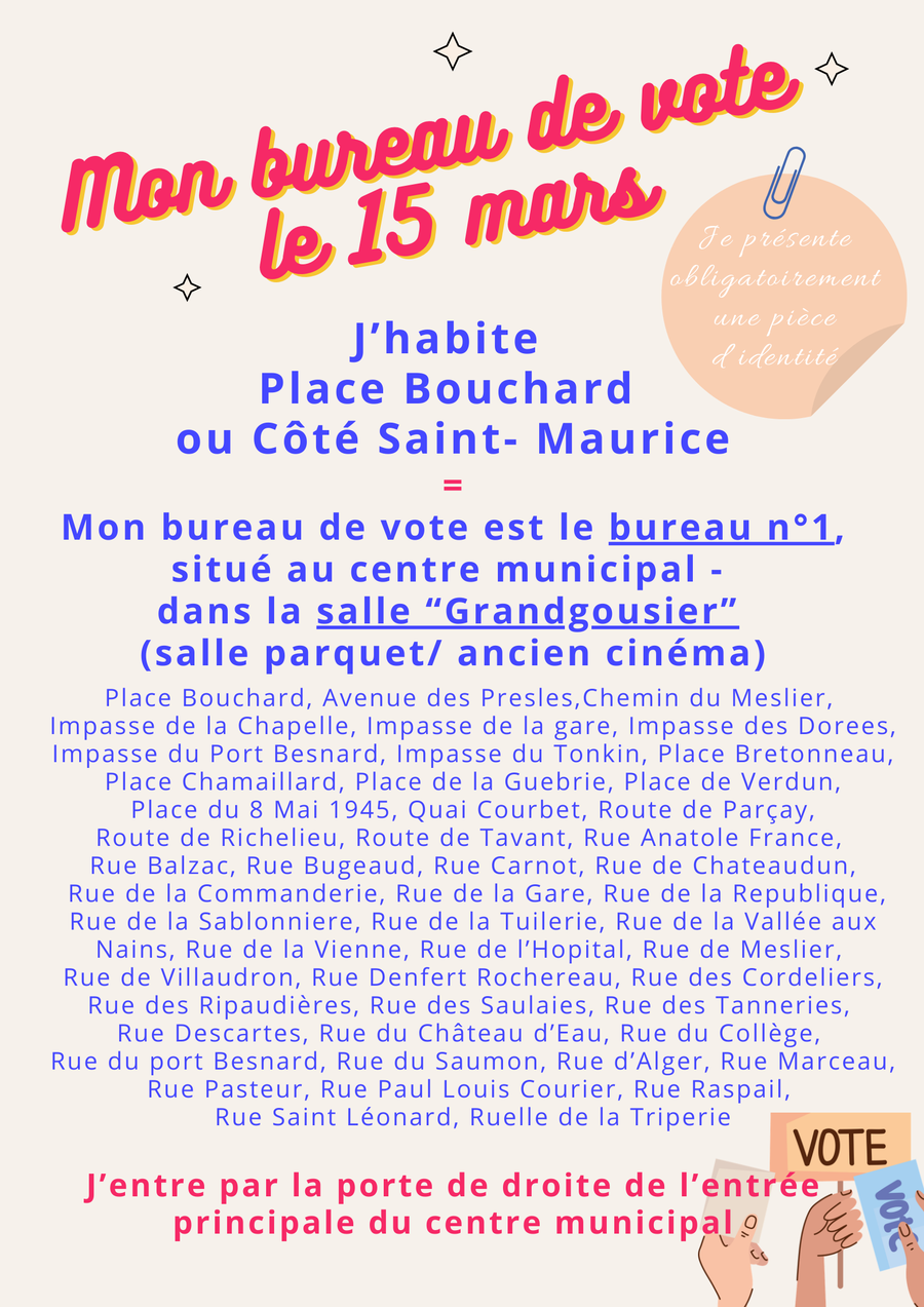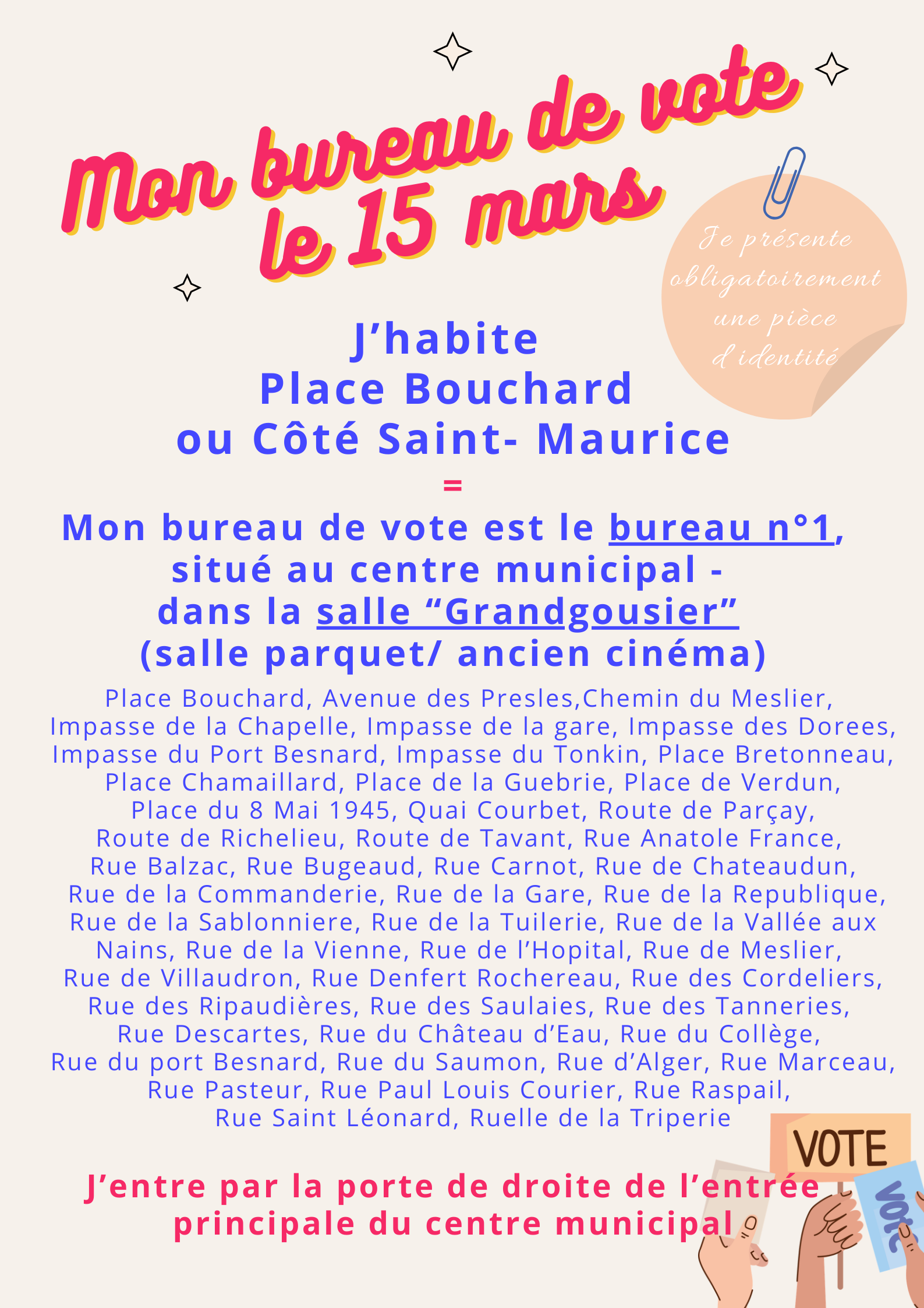 Une communication conséquente sera mise en place au centre municipal le 15 mars afin de vous permettre d'identifier facilement votre bureau de vote.