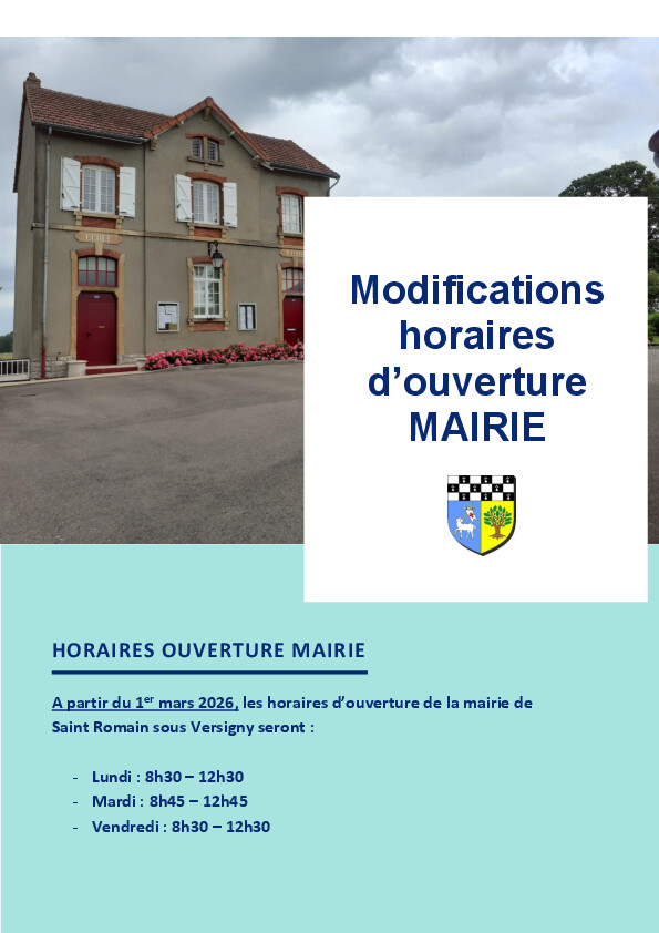 La mairie de Saint Romain sous Versigny sera ouverte aux horaires suivants :