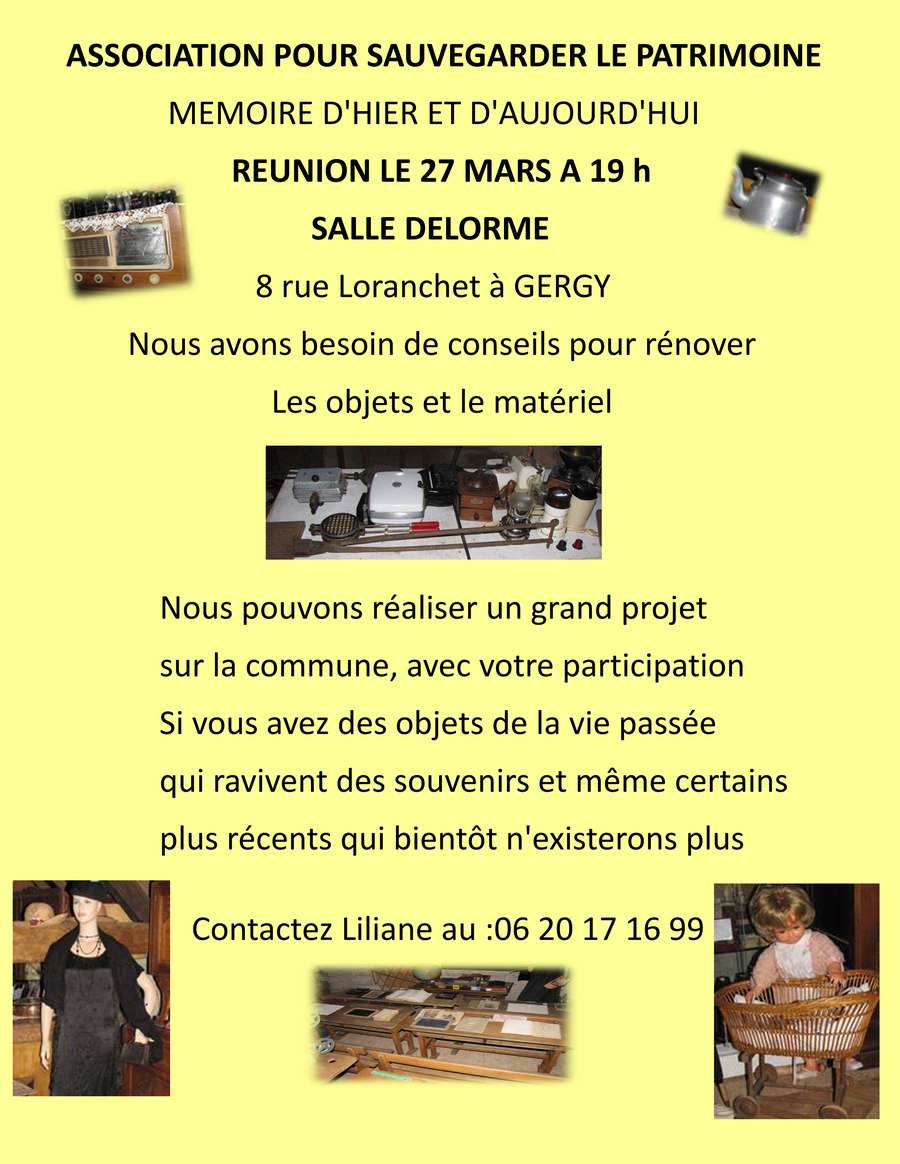 Réunion le 27 Mars à 19 H