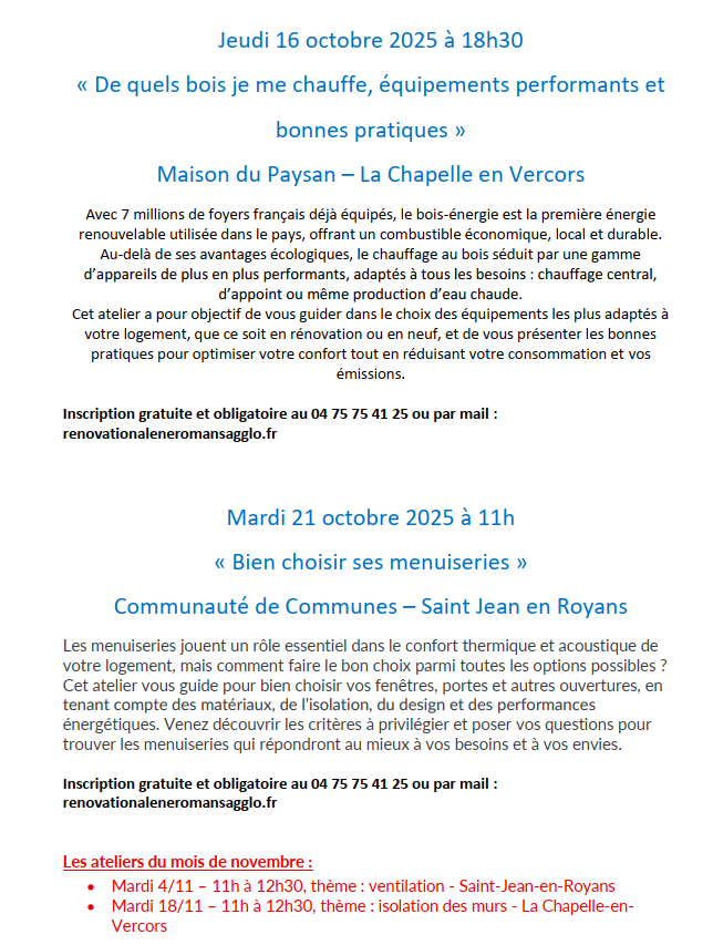 Le 25 novembre de 18h à 20h, une réunion d'informations, de conseils et d'accompagnement est organisée à la salle des fêtes de Saint-Laurent-en-Royans.