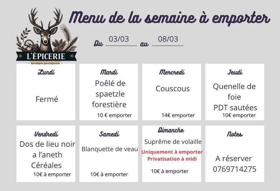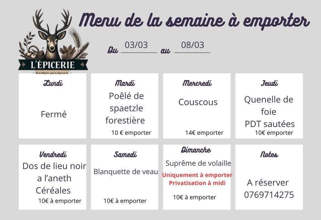 L'Epicerie vous propose des plats du jour faits maison 😋
