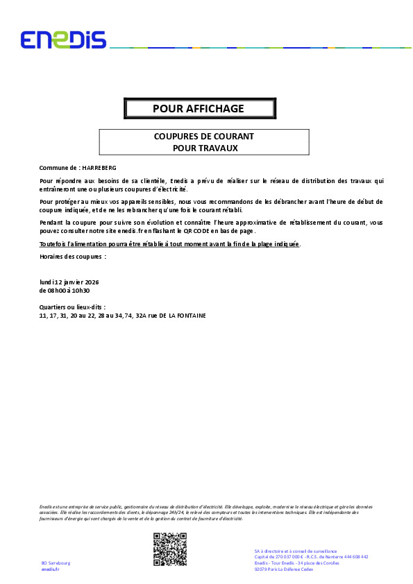 Merci de débrancher vos appareils sensibles avant la coupure et de les rebrancher une fois le courant rétabli.