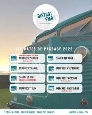 Le mercredi 22 avril, rendez-vous Place des Tilleuls à partir de 18h00 pour une soirée conviviale autour du Bistrot FMR, bar truck itinérant qui fait revivre l’esprit bistrot dans les villages.