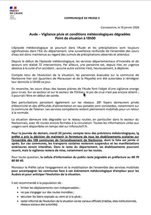 🟠 Le département de l'Aude est place en vigilance "ORANGE"