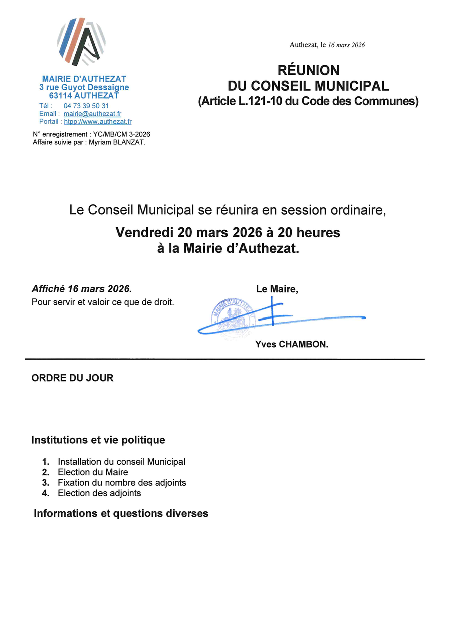 du prochain conseil municipal