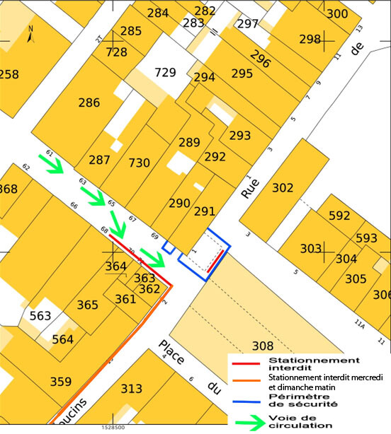 En raison de la mise en sécurité de l’immeuble situé 1 place du marché, le stationnement et la circulation sont modifiés aux abords de l’immeuble à partir du 13/10/2025 et jusqu’à nouvel ordre.
