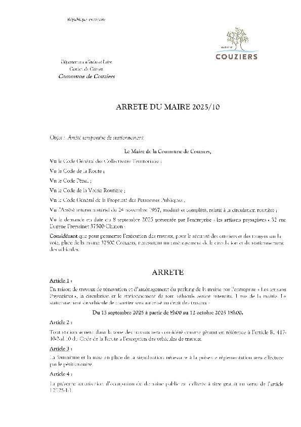 1 Rue de la Mairie 37500 Couziers