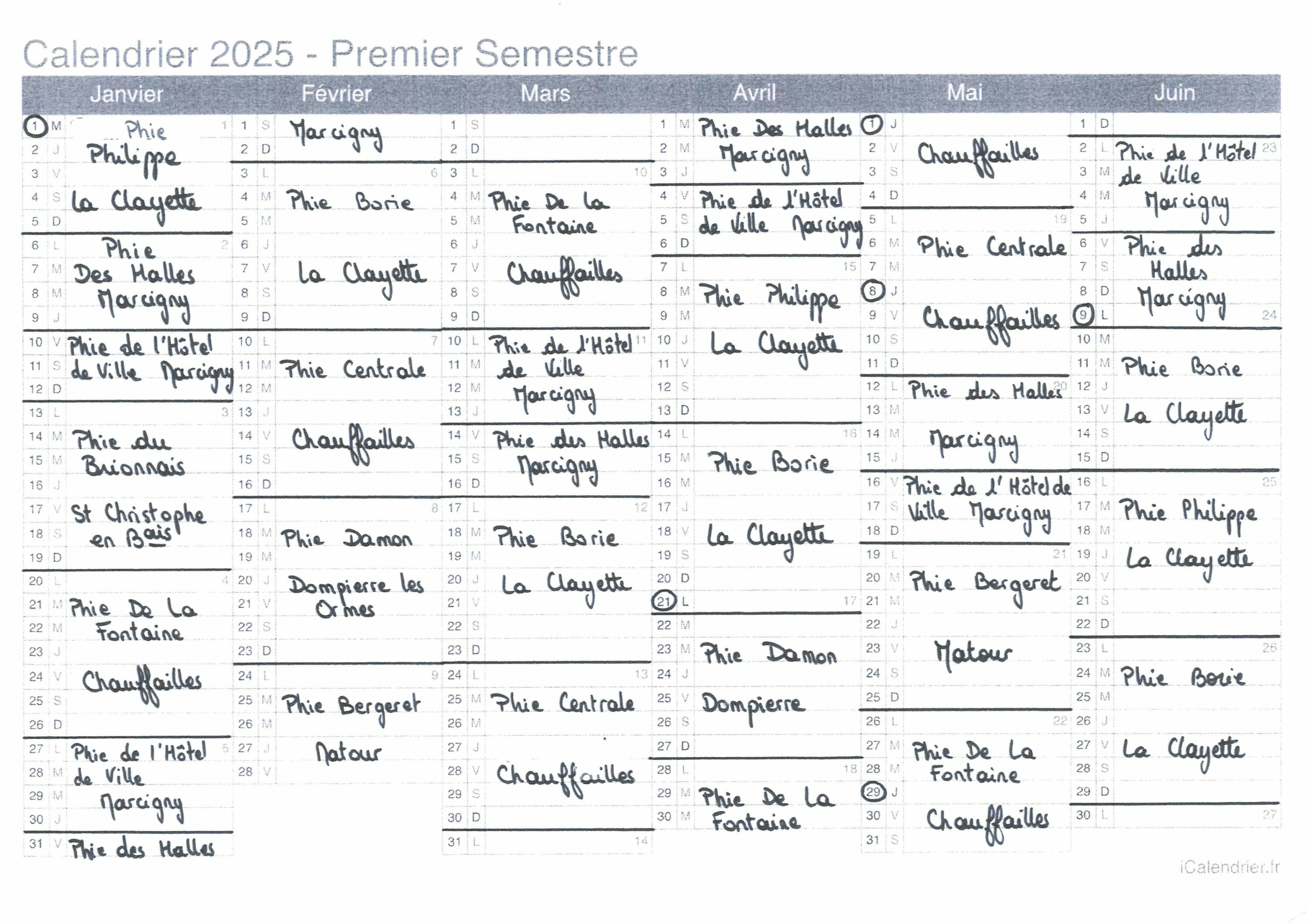 Vous trouverez ci-joint le planning