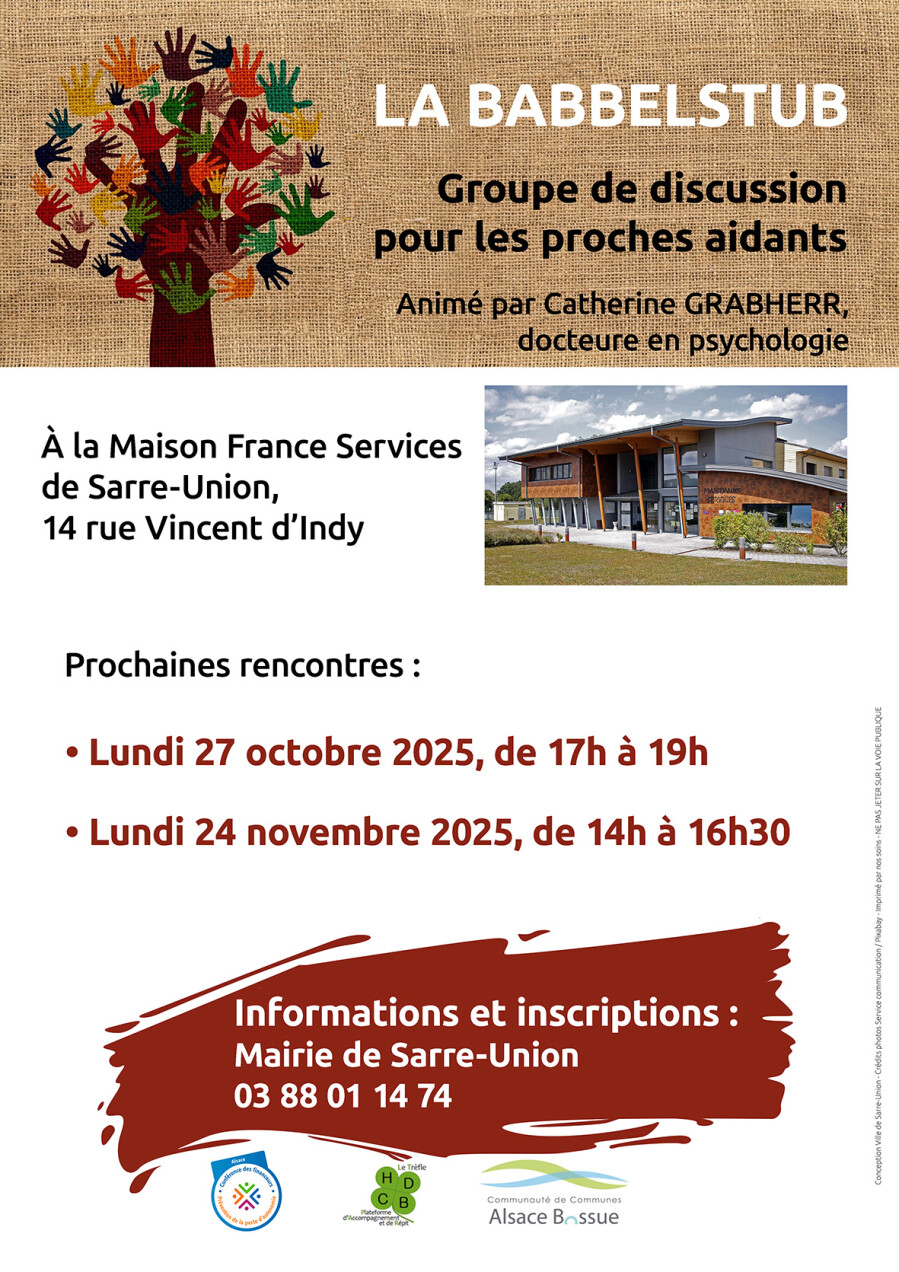 Espace de soutien et d’échange, la Babbelstub est ouverte à tous et se déroule le dernier lundi du mois de 14h à 16h30, à la Maison France Services de Sarre-Union.