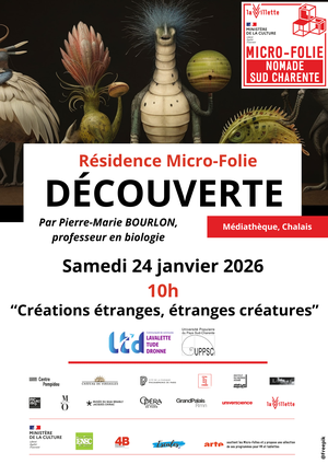 - Samedi 24 janvier, 10h : Découverte animée par Jean-Marie BOURLON, professeur en biologie, « Créations étranges, étranges créatures ».