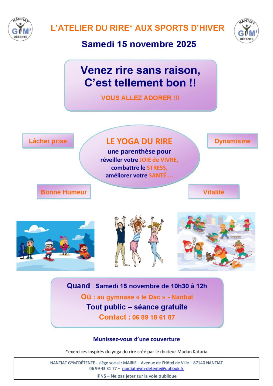 Nantiat Gym'Détente vous invite à sa prochaine séance de yoga du rire :