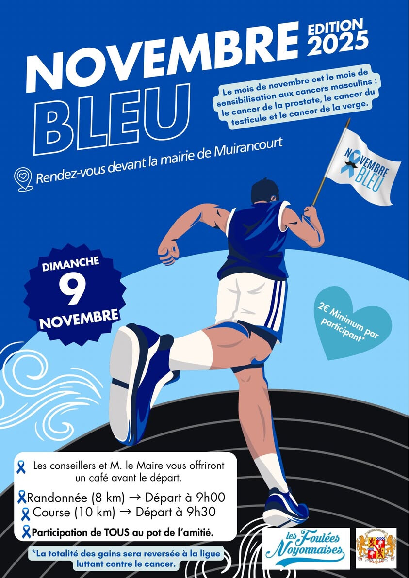 Les Foulées Noyonnaises vous donnent rendez-vous Dimanche 9 Novembre à partir de 9h à la mairie de Muirancourt pour une sortie spéciale Novembre bleu.