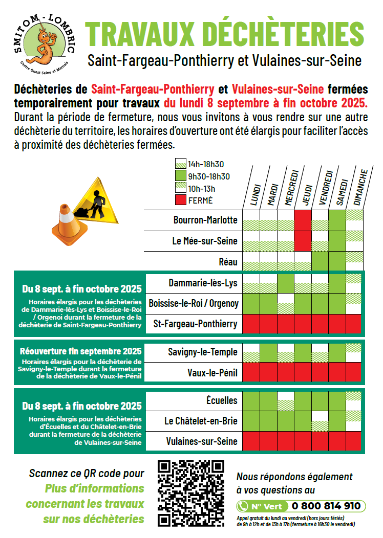 Du lundi 06/10 au vendredi 10/10, du lundi 13/10 au vendredi 17/10 et du lundi 20/10 au vendredi 24/10, de 10h25 jusqu’à 15h30, le trafic est interrompu entre Melun et Montereau via Héricy dans les 2 sens.
