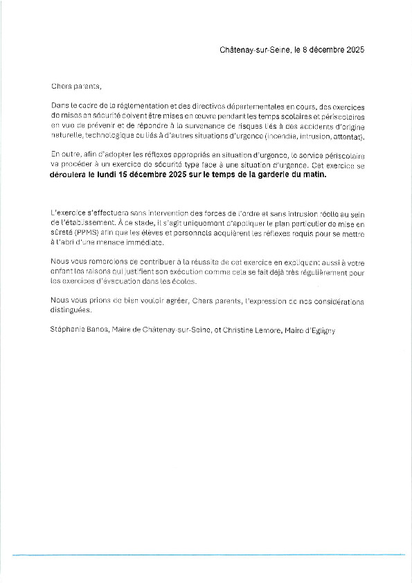 Chers parents,