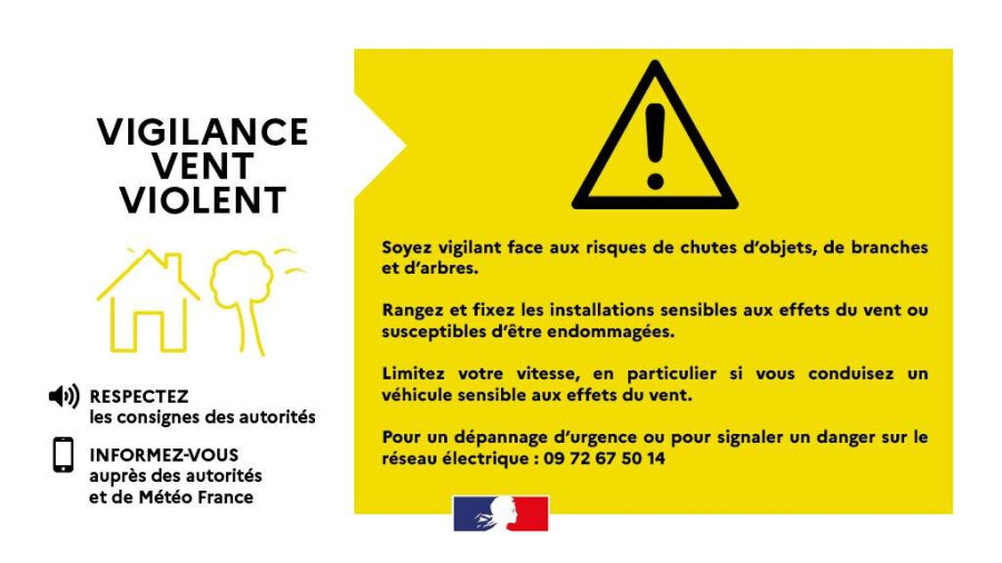 Soyez vigilants face au risque de chutes d’objets, de branches ou d’arbres,