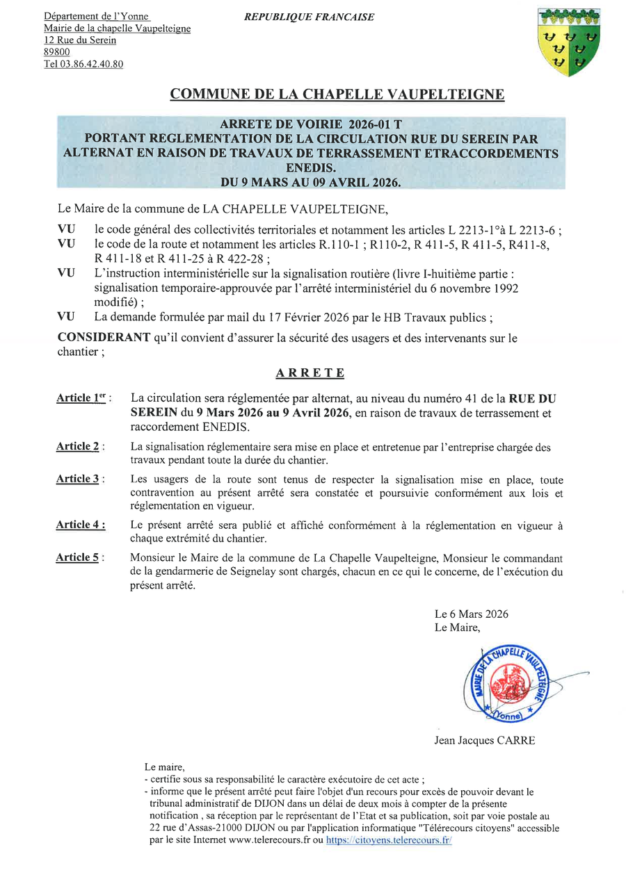 Contact de la Mairie de la Chapelle Vaupelteigne