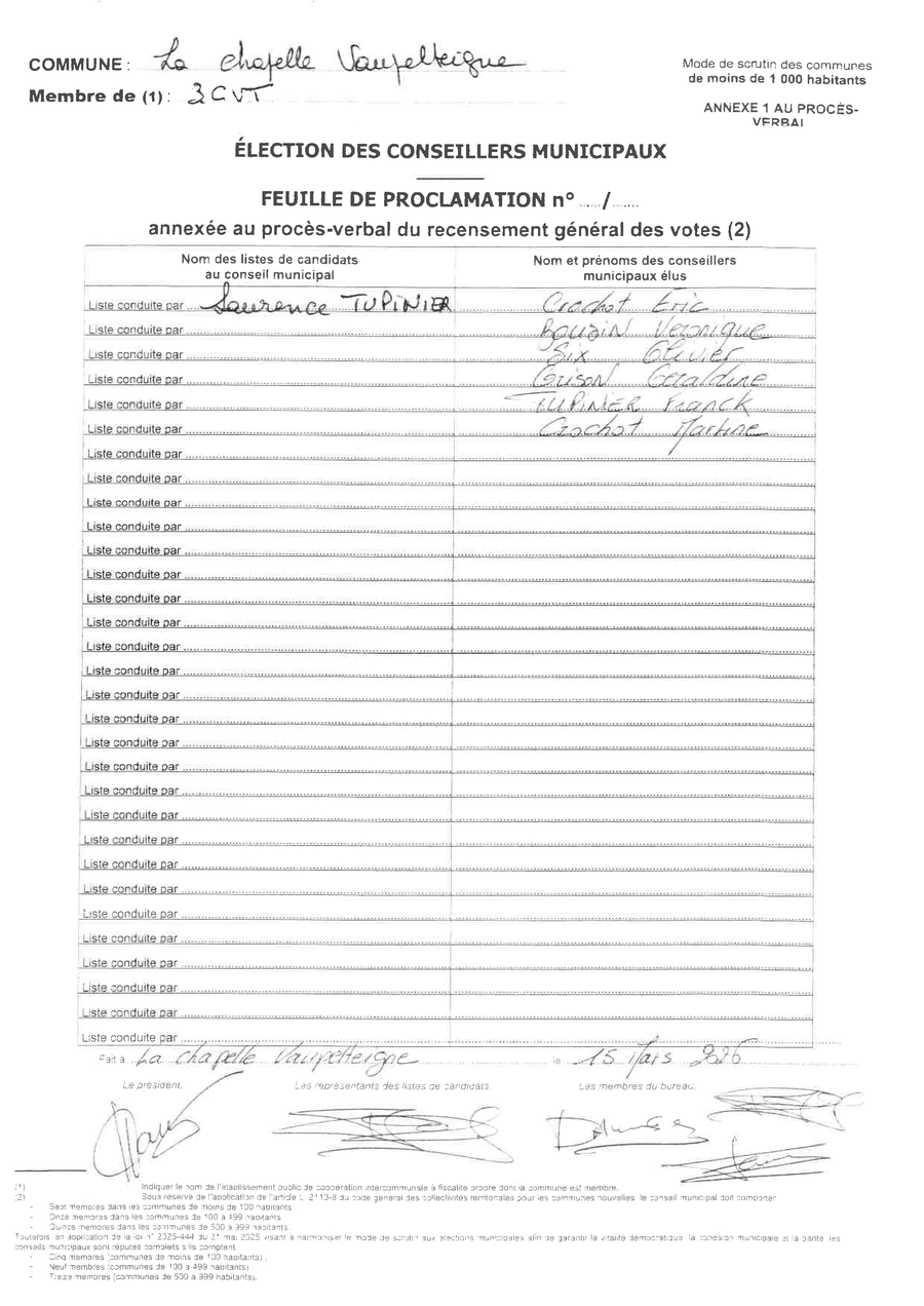 Voici les résultats des élections municipales à La Chapelle Vaupelteigne :