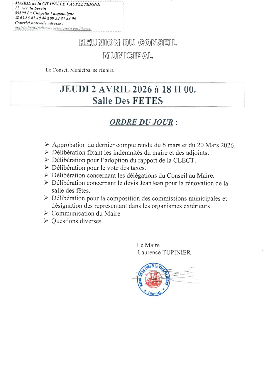 Le conseil municipal se réunira le