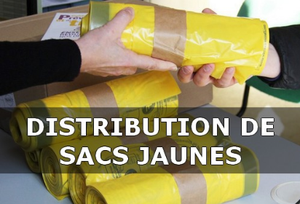 vous invitent à vous rendre dans les salles des fêtes du village pour vous distribuer les sacs jaunes