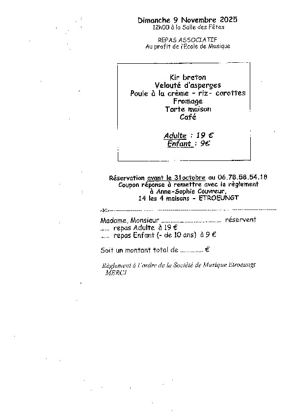 Tous ces événements se passeront à la Salle des Fêtes d'Etrœungt.