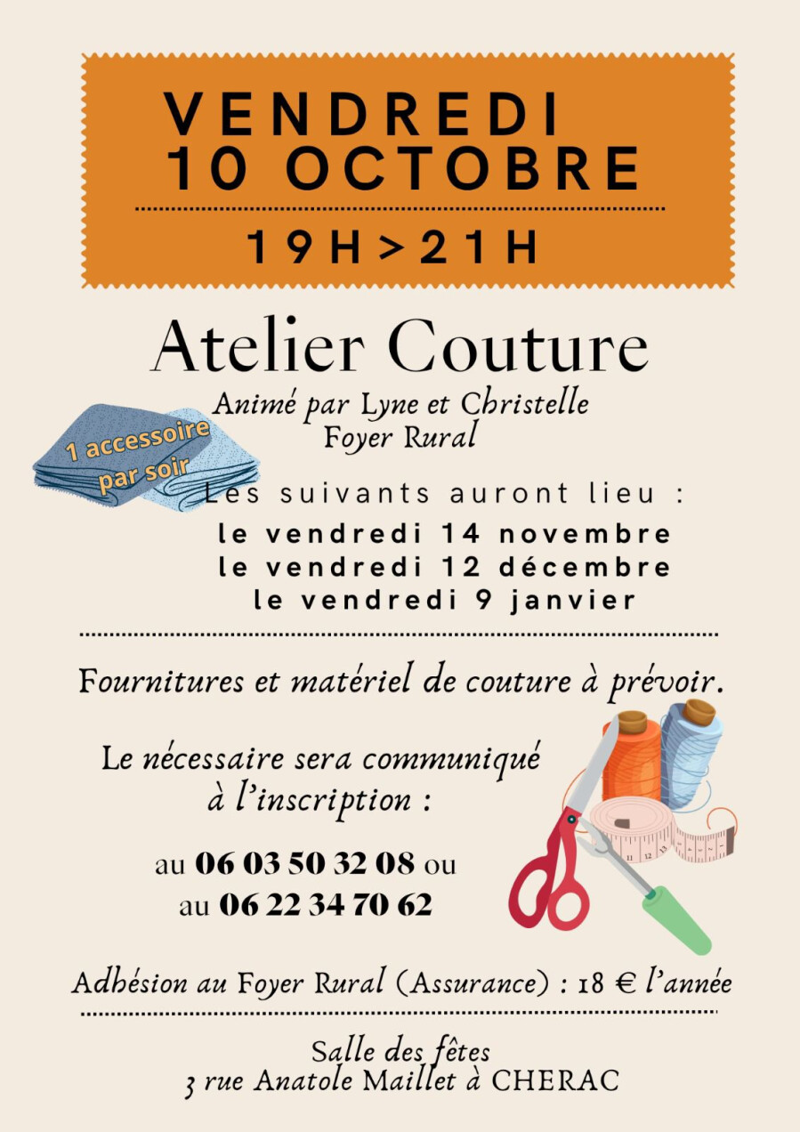 Le Foyer Rural vous propose deux sessions de couture par mois!