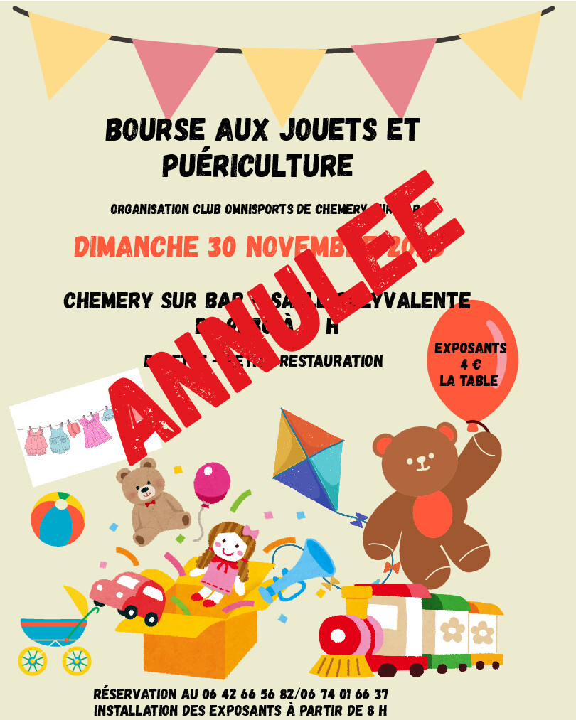 La bourse aux jouets et puériculture initialement prévue le 30 novembre à la salle François GUILLAUME