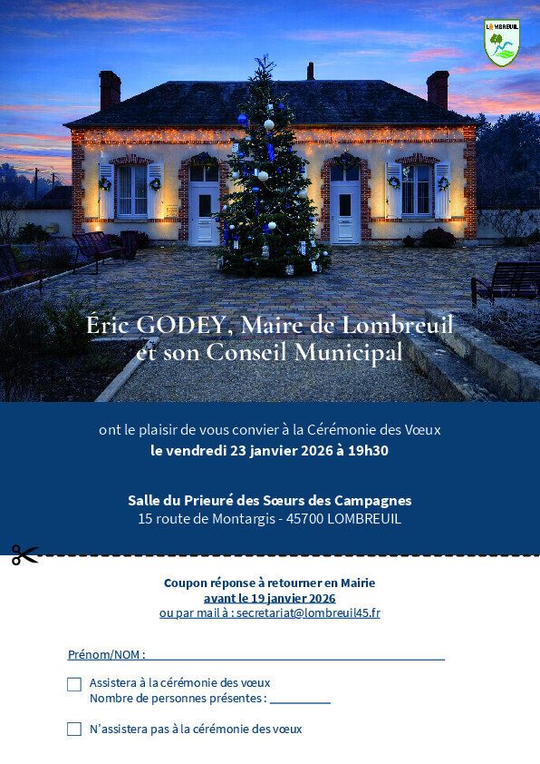 Éric GODEY, Maire de Lombreuil et son Conseil Municipal seraient heureux de vous convier à la cérémonie des voeux 2026.