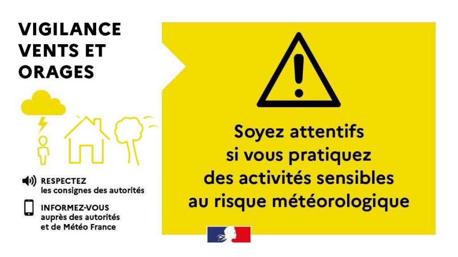 Météo-France place le département de Loir-et-Cher en vigilance jaune vents et orages :