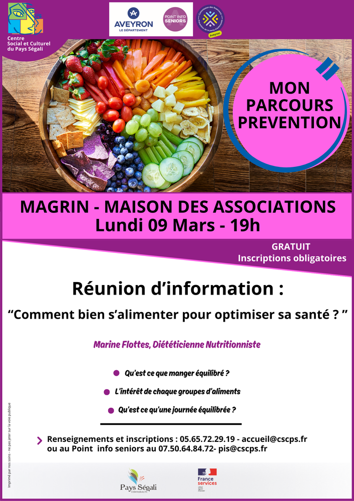 🎈Lundi 9 mars à 19h à la Maison des Associations de Magrin (Calmont) - Animée par Marine Flottes, diététicienne Nutritionniste