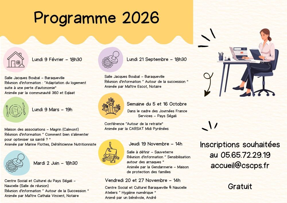 Informations et Inscriptions au 05.65.72.29.19 – accueil@cscps.fr