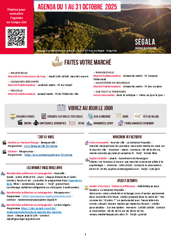 Voici l’agenda des manifestations du 1er au 31 octobre 2025 en Ségala !