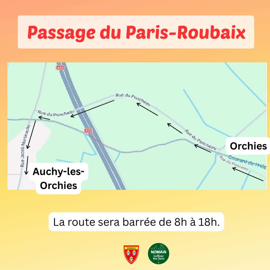 ➡️ La circulation est interdite vers Orchies par la Rue Michel Beyaert