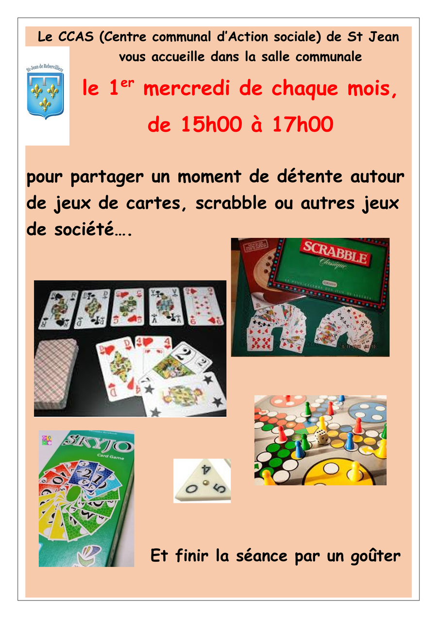 Le CCAS propose une après-midi jeux de société à la mairie suivie d'un goûter