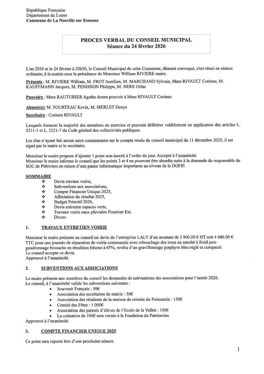 Compte-Rendu du Conseil Municipal du 03 mars 2026