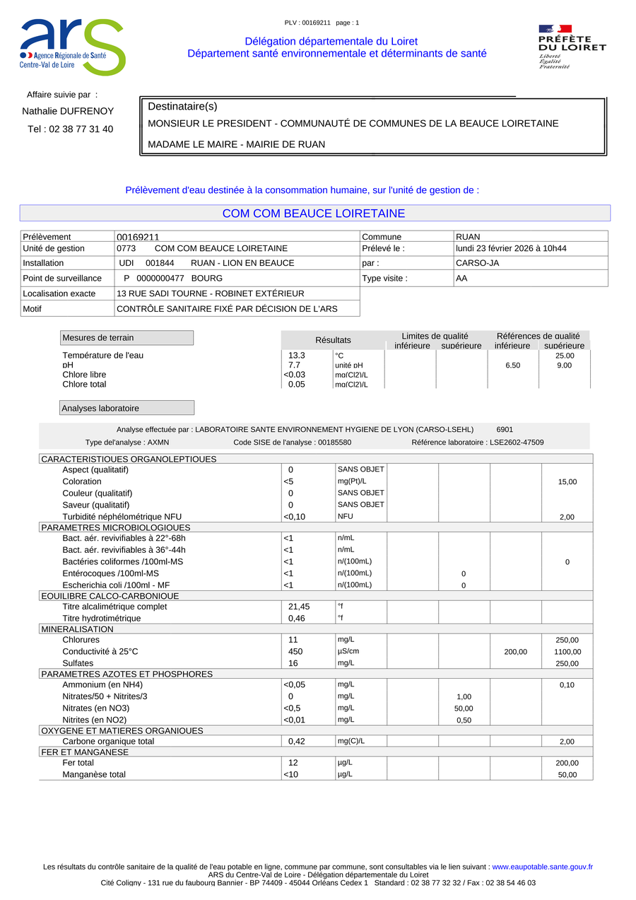par téléphone au 02 19 23 00 50 ou par mail eaupotable@cc-beauceloiretaine.fr
